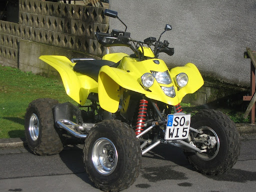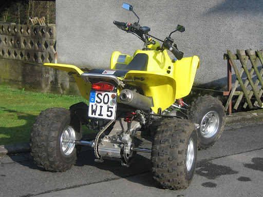 Mein Schwager will seine Suzuki LTZ 400 verkaufen. Das Quad ist Bj 2004 und hat 38 PS (Zulassung als VKP (15KW)) Zubehör: Nerfbars, Handprotektoren usw. Das Quad steht seit 3 Jahren unbewegt in unserer Halle (deswegen soll es auch weg - Führerscheinprobleme <hüstel>). Es hat ein neues Kettenkit, der Rahmen wurde Pulverbeschichtet, es ist eine Durablue-Achse und Spurverbreiterungen vorn verbaut. ![]() ![]() Das Teil rennt wie Sau und ist nix für Warmduscher ! ![]() Preis: 4000 Euro im Serienzustand, 4250 Euro inkl Achse und Spurverbreiterung vorn. Festpreis !! Edit: Abzuholen in 59457 Werl - Kreis Soest. Gruß, Jörg Geändert von L0B0 (29.03.2010 um 21:01 Uhr) |