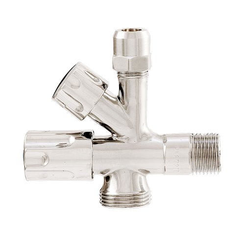 Meine Frage: Kann mir jemand sagen, was für Anschlüsse (Gewinde in Zoll) der Teil haben muß, den ich neu kaufen sollte (also der absperrbare Abzweiger)? Anhaltspunkt für den Maßstab: das weiße Kunststoffrohr hat aussen etwa 16mm, der Bogen in der Mitte etwa 18mm.