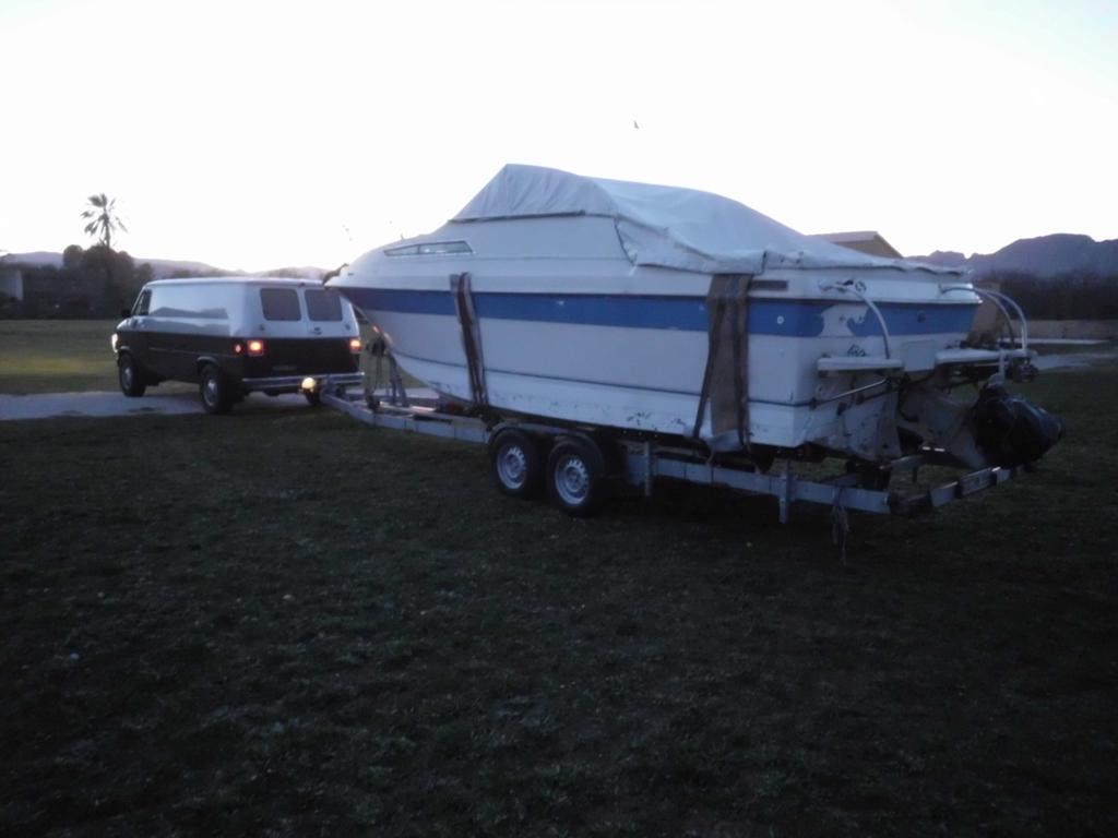 Wirklich schöner Klassiker, Bayliner Saratoga V8 Volvo Penta 290 PS mit Alpha One, Bj. 1980, 2,2t Wasserverdrängung, für das Alter wirklich gut beisammen, Kleinigkeiten wie Anoden und Motoröl tauschen. Das letzte Jahr keine Zeit zum Putzen gehabt, müßte also mal wieder richtig saubergemacht und angestrichen werden. Anständige Stehhöhe von 1,80m in der Pantry. Sauberer Herd. Länge über alles 8,50m. Zum Größenvergleich, der Trailer ist 9,30m lang, das Zugfahrzeug ein Chevrolet Van mit 5,5m Länge. Bis Ende 2009 nur im Süßwasser, danach 2 x in Spanien im Wasser gewesen und gerade wieder nach Kiel geholt. Der Preis bezieht sich nur aufs Boot, einen 3,5t Harbecktrailer mit extra Slippeinrichtung würde ich für 2600,- dazu geben, wenn Ihr keinen festen Liegeplatz möchtet. Wenn der Trailer nicht benötigt wird, ist er danach alleine für 3200,- zu erwerben. Transport überall hin gegen Unkosten möglich.
