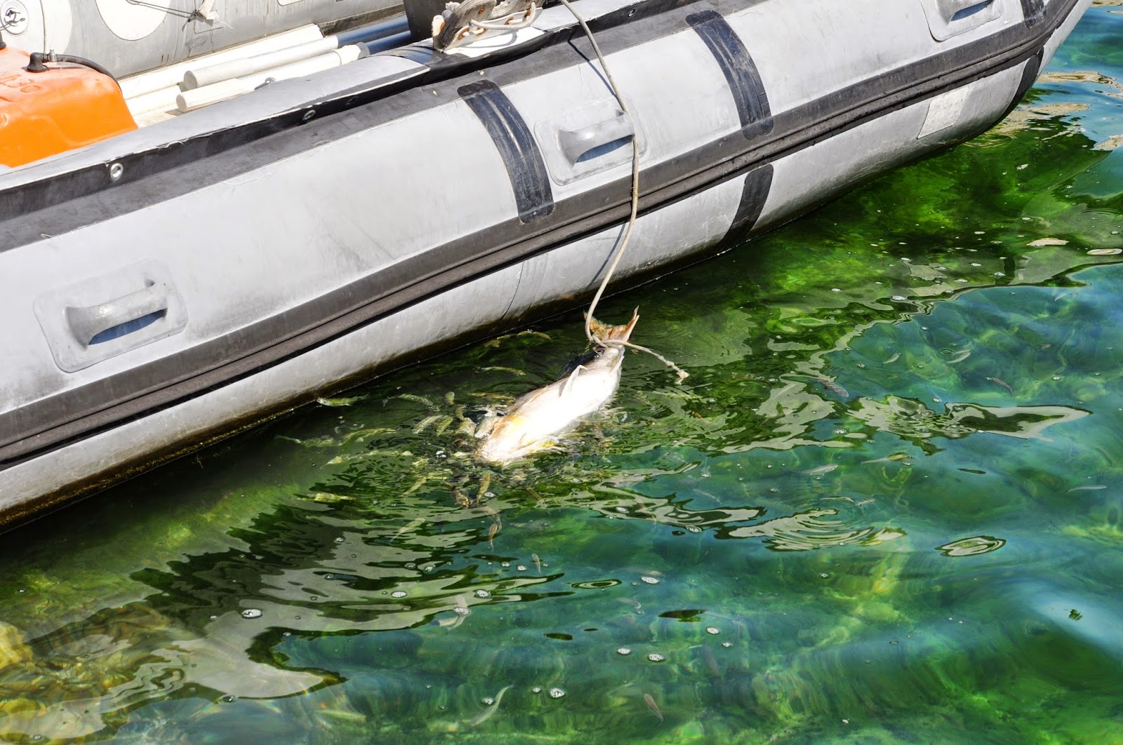 Wenn an der kroatischen Küste Fisch gefangen wird, kommt der sofort auf's Eis. Anders wäre es gar nicht möglich, ihn länger als zwei Tage zu lagern, und bevor man ihn grillt, muss er ja irgendwie aufgetaut werden - warum nicht im Meerwasser? Wirklich fangfrischen Fisch bekommt man nur direkt am Kutter, und auch der ist zumindest angefroren, weil: die fahren nicht morgens 'raus und kommen nachmittags zurück, die bleiben oft tagelang draußen.