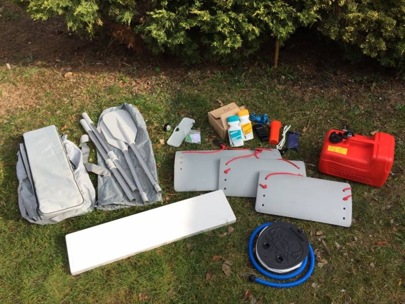 * Fender und viel Kleinzeugs, neue originale Persenning, Tank, Pflegemittel, Stechpaddel mit Enterhaken etc.