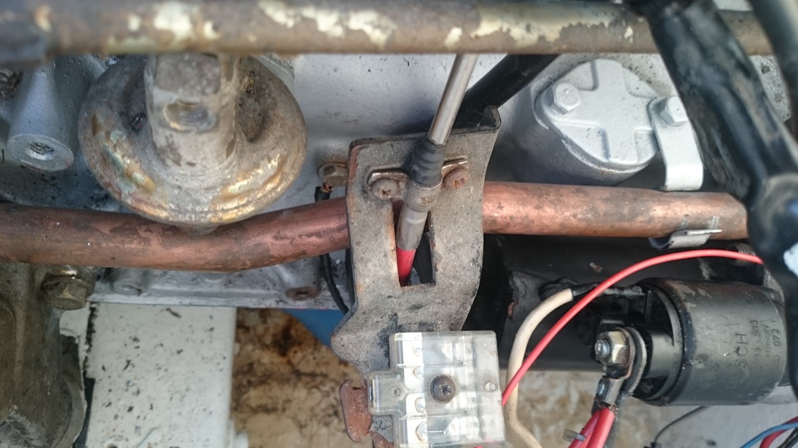 ... XXXXBevor Du weitere Startveruche machst sollte erst mal alles sauber montiert,verlegt und gereinigt werden. Da ist einiges zu machen .... Den Dauerplus am Anlasser erstmal richtig anziehen und einen Federing unter die Mutter. Bei der Lichtmachine sollte die Scheibe hinter die Mutter (Spannstrebe). Verteilerkappe innen und außen peinlichst säubern (der kleine Stift - mittig in der Kappe muß von der dahinter sitzenden Feder leicht zu bewegen sein). Der Verteilerfinger (unter der Kappe) bekommt das gleiche Programm. Immer schön vorsichtig demontieren und darauf achten das nix verloren geht bzw. die vorhandenen Positionen für die erneute Montage merken. Durchgehende Kraftstoffverbindungen mit geeigneten Schlauchmaterial mit richtigem Durchmesser schaffen. Schlauchschellen sollen abdichten und nicht einschneiden etwas Material sollte am Ende überstehen. So wie derzeit: 2 unterschiedliche Durchmesser und dann auch noch Querschnittreduzierende Röhrchen darin ---> Mist Die Verbindungsstelle genau über der Zündspule ---> Suizidverdächtig Würde ich so einen Motorraum im Hafen sehen ... ich würde den Kampfmittelräumdienst rufen .... Wenn nicht mehr benötigt, mechanische Benzinpumpe demontieren und den Kabelbaum zur Lichtmaschine so verlegen das nix scheuern kann. Ggf. alle Kabelbinder vorsichtig entfernen, die Kabel auf Scheuerstellen kontrollieren und sauber verlegt ---> neu befestigen. Alle Endanschlüsse (gesteckt und geschraubt) neu absetzen und verzinnt, neu verpressen. Völlig unklar ist mir der (anscheinend) Bowdenzug-Rest an der Strebe mit dem Steckverbinder .... ![]() Kann es sein das der Motor gerade erst von einem anderen Boot in dieses verpflanzt wurde ![]() ... Mit fix zusammengeschusterten Glastron's ein bestimmten Ebayers gab es ja schon mehrfach Ärger, aber ganz so pfuschig waren die nicht lackiert.
