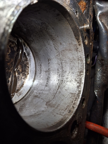 So wie es aussieht würde ich dir mit deiner Vermutung recht geben. Es sieht nach einem Riss aus. Versuche mal durch Schleifen den Bereich deutlicher sichtbar zu bekommen. Was sagt denn dein Motoröl. Ist da Wasser drin? Detlev
